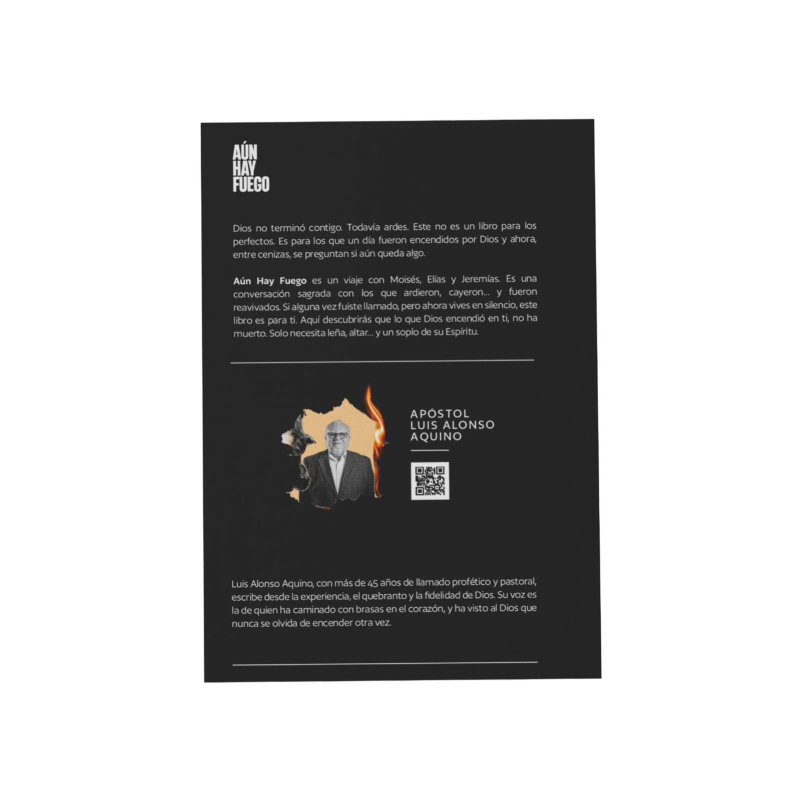 Aún Hay Fuego es un llamado para quienes alguna vez ardieron por Dios y hoy sienten que su llama se ha debilitado. A través de las historias de Moisés, Elías, Jeremías y los dos testigos del Apocalipsis, el autor revela que el fuego divino no se extingue, aunque parezca oculto bajo las cenizas del cansancio, la rutina o las decepciones. Con un lenguaje profundo y cercano, este libro invita a reencontrarse con la voz que llama desde la zarza, el monte o la cueva, recordando que el Dios que encendió tu vida no ha dejado de hacerlo.