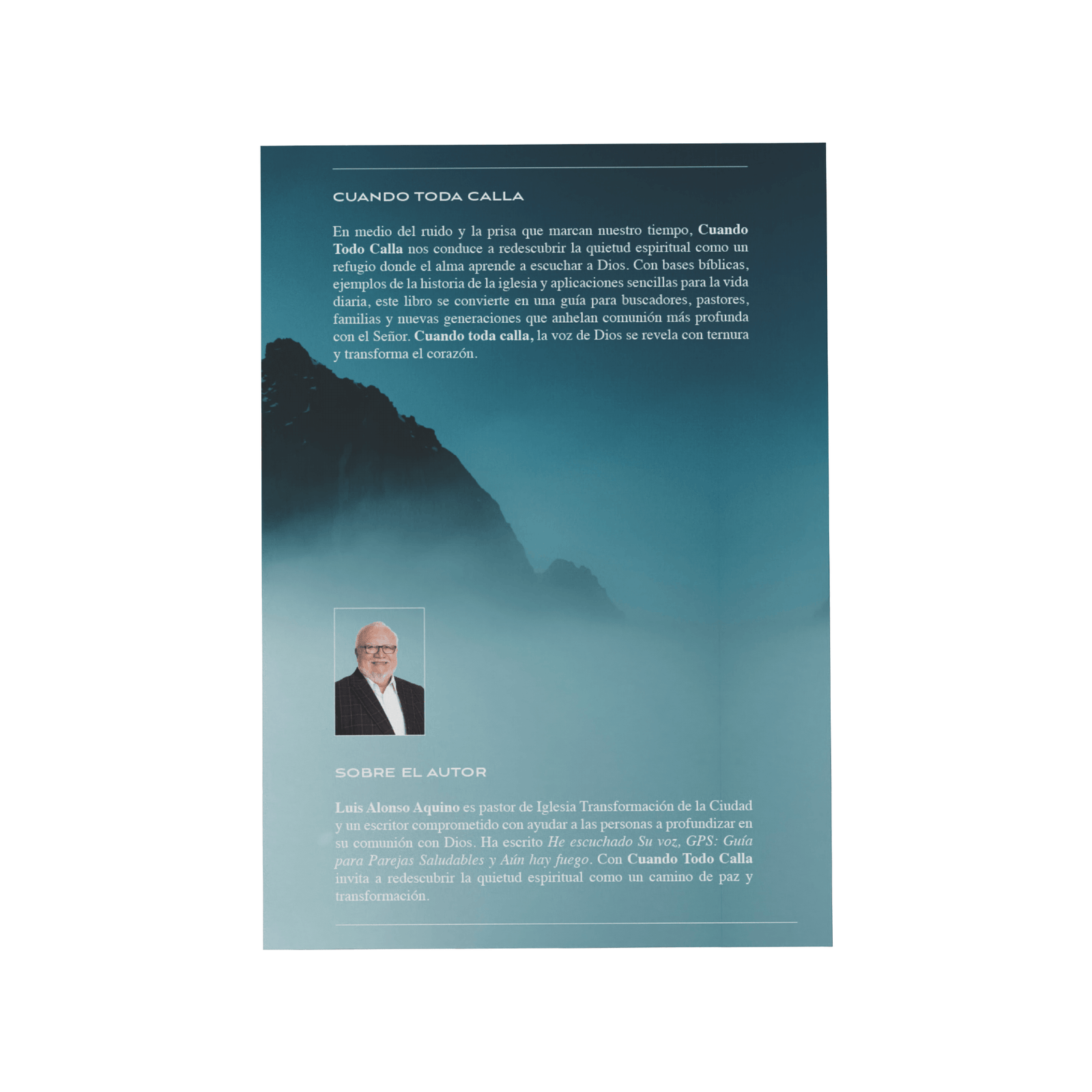 Cuando Todo Calla es una invitación a redescubrir la voz de Dios en los silencios más profundos de la vida. A través de experiencias personales, reflexiones bíblicas y momentos de quietud, el autor nos guía por ese territorio donde las palabras humanas se apagan y solo la presencia divina permanece. Este libro revela que el silencio no es ausencia, sino un espacio sagrado donde Dios habla al corazón con ternura, verdad y propósito.